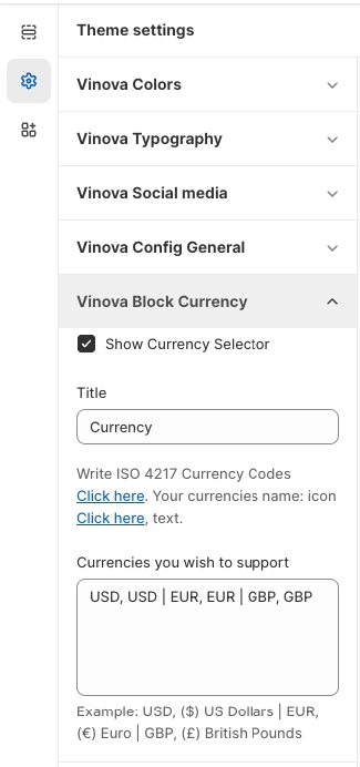 Currencies you wish to support: Add your desired currency here. Example: USD, ($) US Dollars | EUR, (€) Euro | GBP, (£) British Pounds