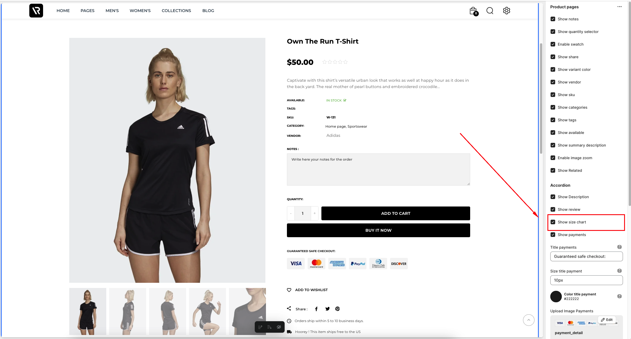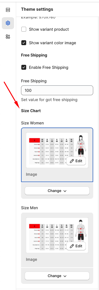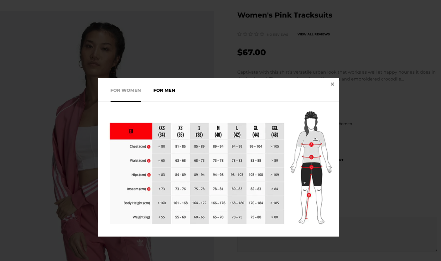 Customize Size Chart Popup