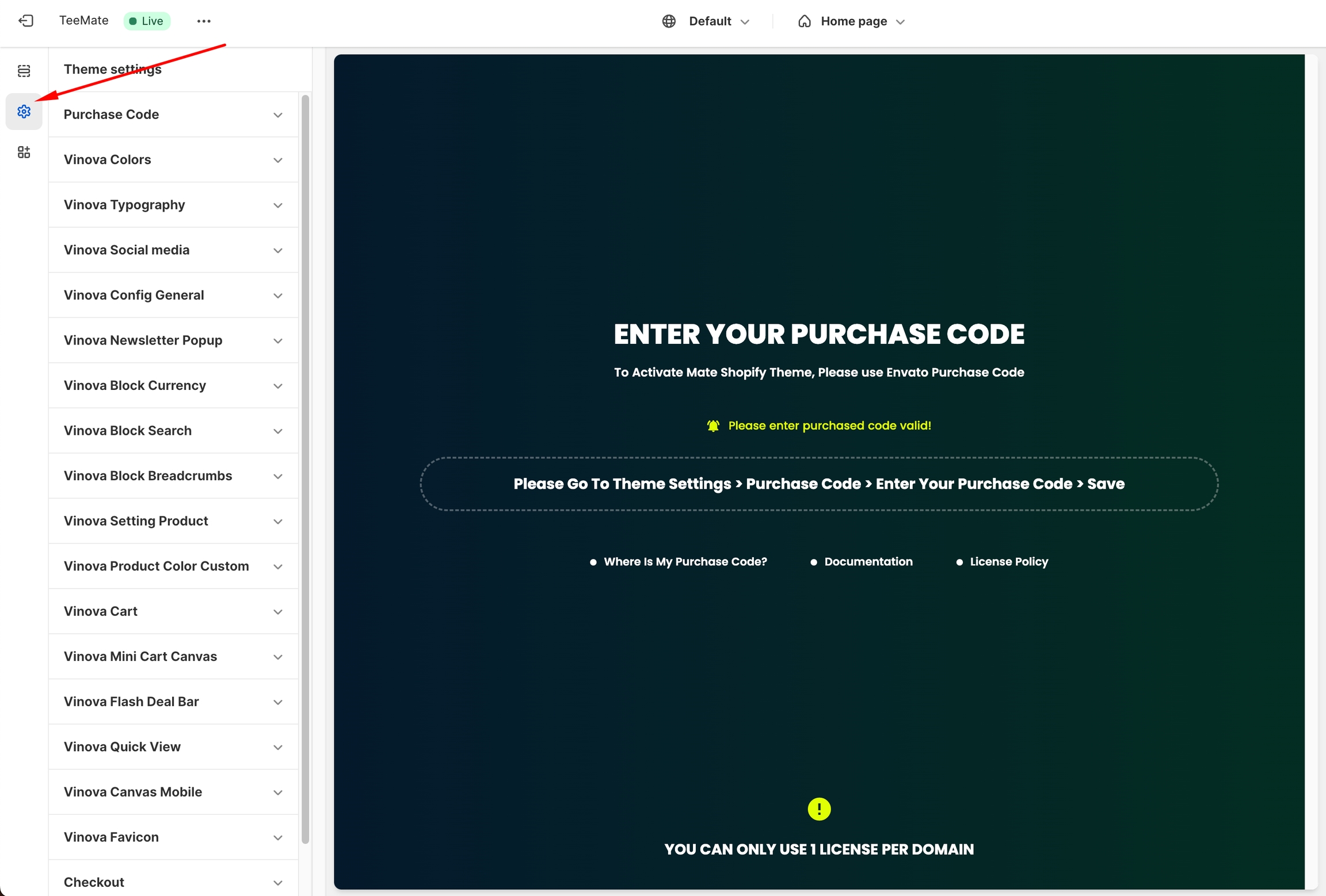 Click on the "Theme Settings" icon to display the Theme Settings page.