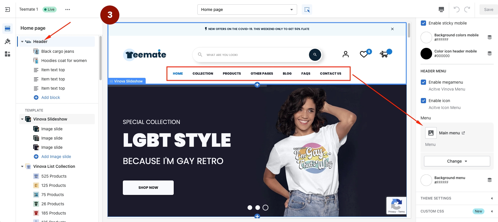 The Main menu is the menu on the Header. In this tutorial, we will show you how to set up the header menu and configure it like our demo. You can use this guide to set up your menu.