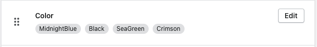 For example, suppose that you sell T-shirts with two options: size and color. The size option has three values: small, medium, and large. The color option has two values: blue and green. One specific variant from these options is a small blue T-shirt.